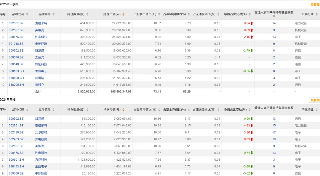 24Q2,刘小明的持仓中已经出现了三巨头“易中天”,但相关个股他并没有从头拿到尾,24下半年-25年年初,其实重仓股变了不少,整体是从CPO转成了PCB。