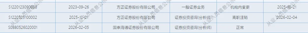 近日,证券从业系统显示,张轩铭,2月4日从财通证券离职,2月5日正式加入国泰海通证券。张轩铭,方正证券金融行业分析师,