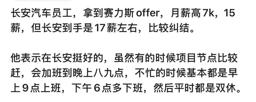 最近一位长安汽车朋友的跳槽,拿到赛力斯 offer 后陷入纠结