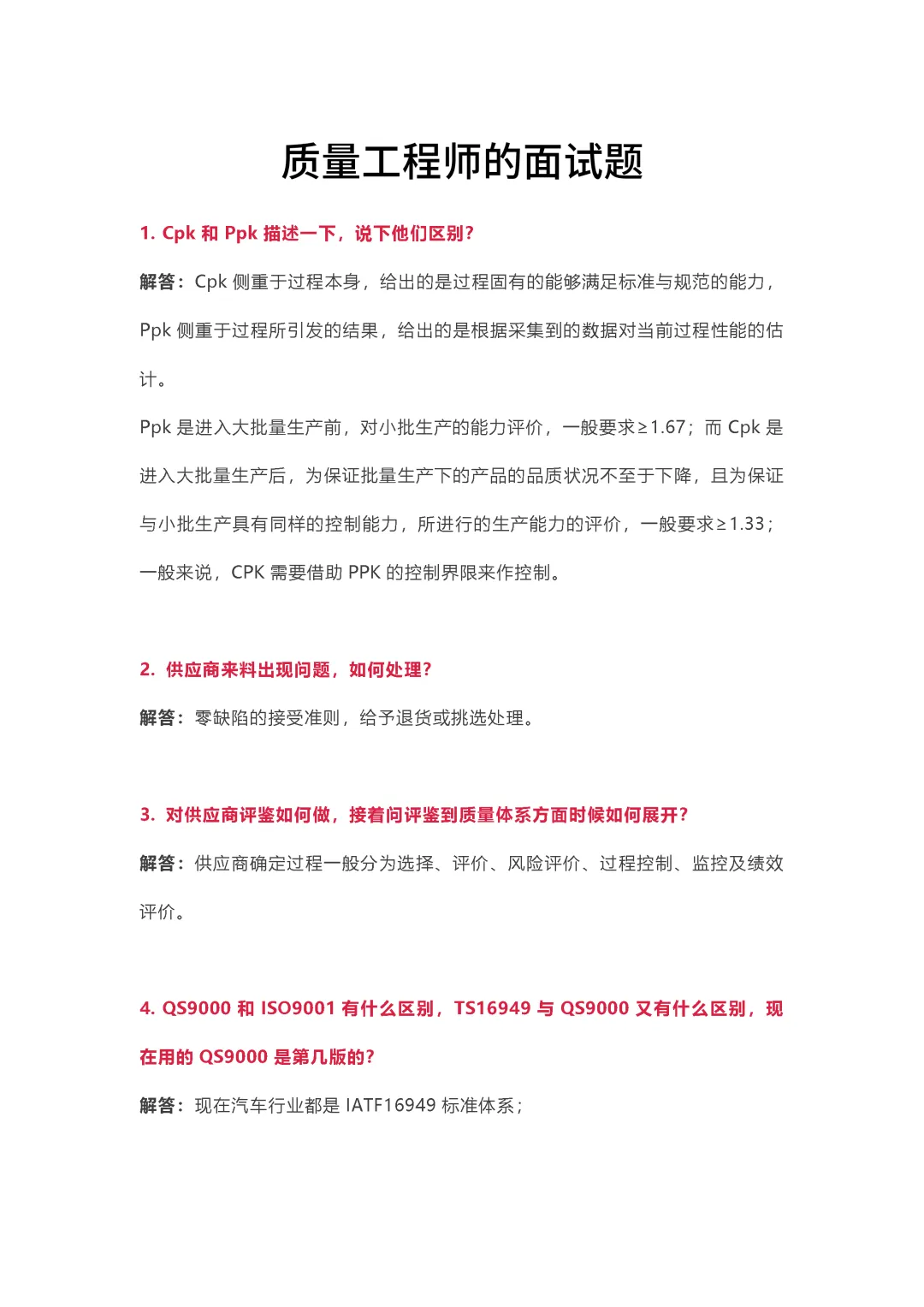 如果你也正在考虑跳槽,或是面对一些困惑,老陈给大家准备了一份质量工程师面试题,提前准备,面试不慌!