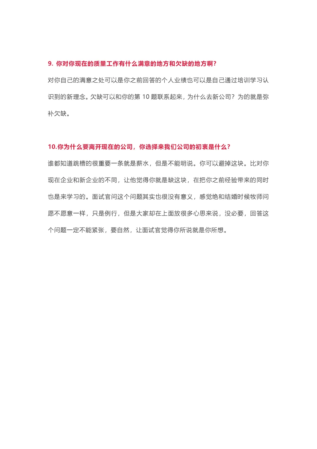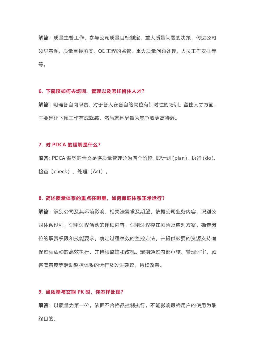 - 在面试前做足准备,确保自己能够从多个角度展示自己在质量管理上的能力,比如通过具体的案例、成功经验等,体现自己的专业能力。