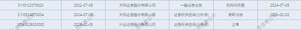 >天风证券一分析师跳槽兴业证券