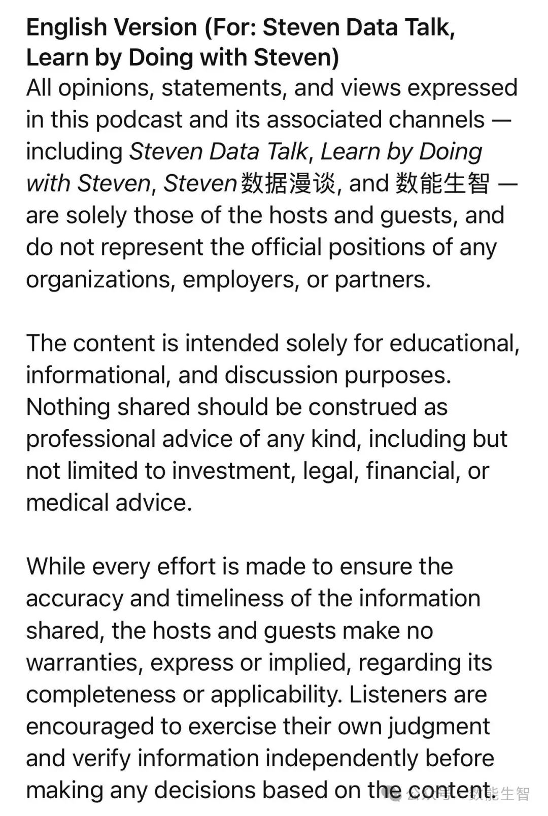 《Steven数据漫谈》——用最清晰的方式,聊最前沿的人工智能、科技、创新、商业、创业思考。现已登陆 Spotify、Apple Podcasts、YouTube、Amazon Music、小宇宙、喜马拉雅 等平台。