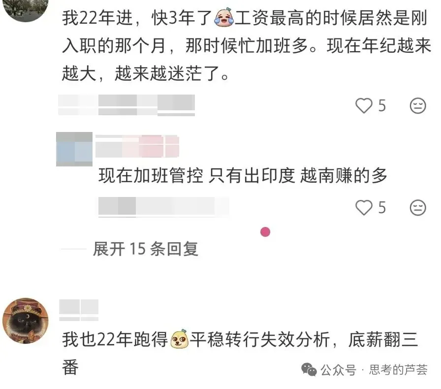 我身边有个同事,和我一起入职,能力不如我,绩效也只是中等,但因为和主管走得近,先我一步升到了员二,加薪也比我多50块。还有一个师一的工程师,干了10年,岗位从来没动过,现在的工资,甚至不如我们这些资深员三——毕竟我们能多加班,而工程师的加班费管控更严,每月综合下来,也就6000多块。我算了一笔账,我现在每月底薪2900,加班控制在每周60小时以内,综合工资大概6500块左右,扣除五险一金(按最低标准交),到手也就5800上下。这4年,我的薪资涨幅还不到11%,连通胀都跑不赢,更别说攒钱买房、养家糊口了。