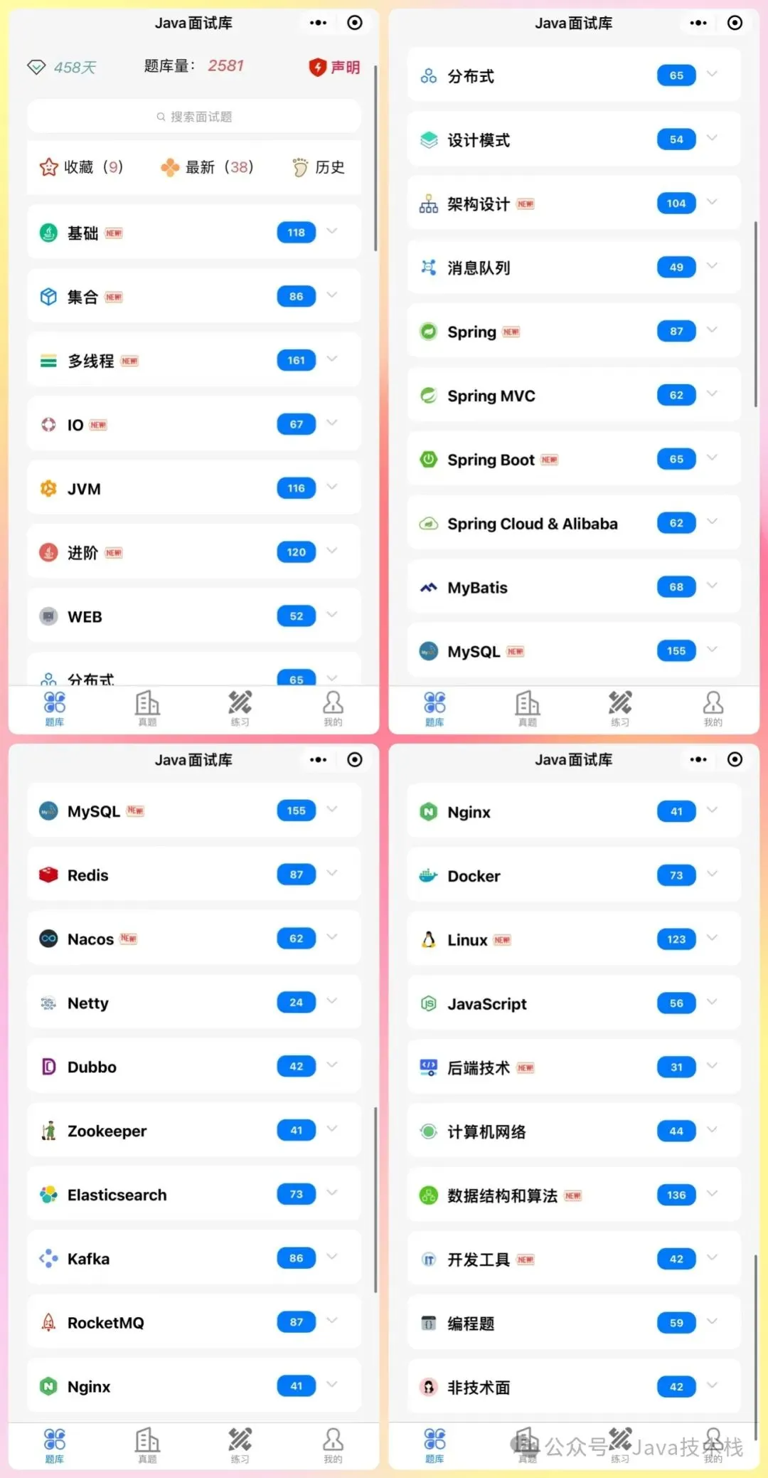 题库从 0 一直更新到现在 3000+,几乎覆盖了所有主流 Java 面试题,还能自测练习,花费我巨量心血,堪称面试速成神器。
