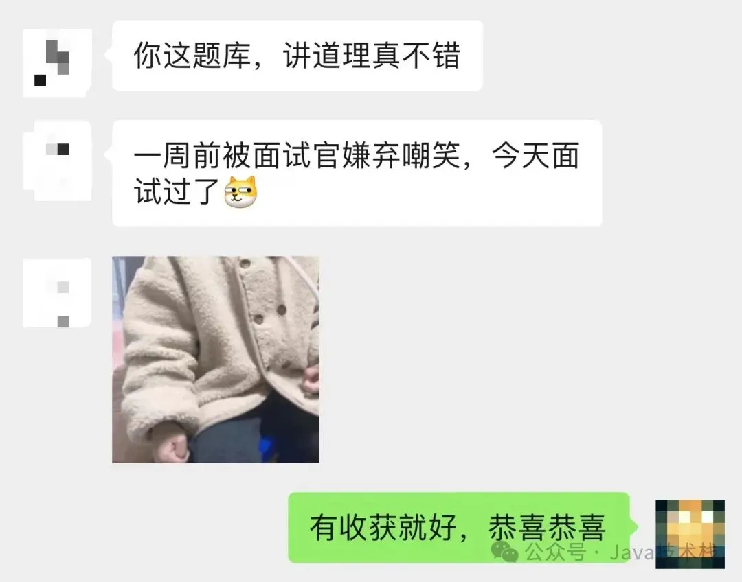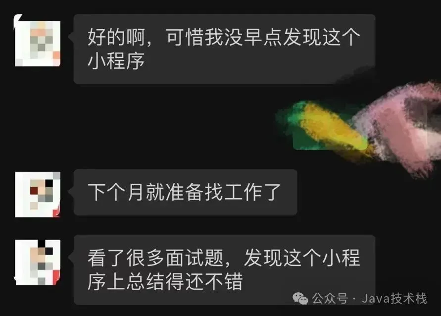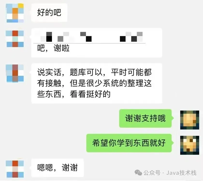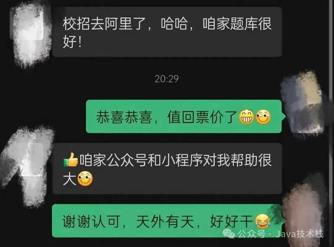 Java面试库小程序运营以来,像这样的反馈实在太多了,其中也帮助许多粉丝进入大厂,这也让我觉得很有意义在做的一件事情,很欣慰,也很有成就感。