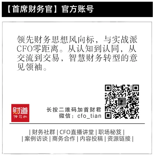 版权及免责声明:公众号内文章系【首席财务官】原创,未经授权,禁止转载!图片来源于网络!非原创或注明来源文章不代表本号观点,仅供参考。如有侵权,请联系删除。