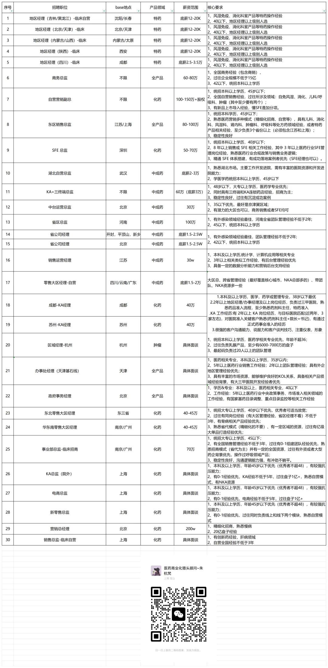 猎头顾问朱杭梵的职位 | 销售总监、营销副总、三终端总监、商务总监、地区经理等