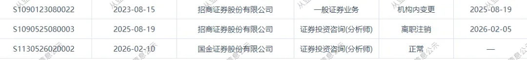 近日证券从业系统显示,鲍淑娴,2月10日加入国金证券,鲍淑娴,招商证券计算机行业分析师,