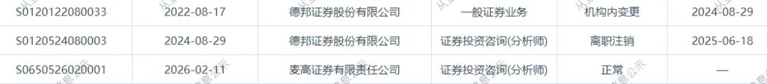 近日证券从业系统显示,白鑫,6月18日从德邦离任,2月11日正式加入麦高。白鑫,德邦电新行业分析师。