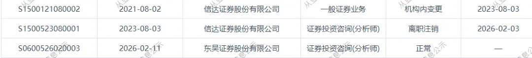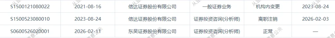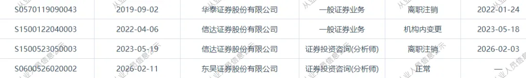 近日证券从业系统显示,周金铭、崔诗笛、孙石于2月11日加入东吴证券。周金铭、崔诗笛、孙石是原信达证券金工首席分析师于明明团队成员。而于明明已经于12月26日正式加入东吴证券。