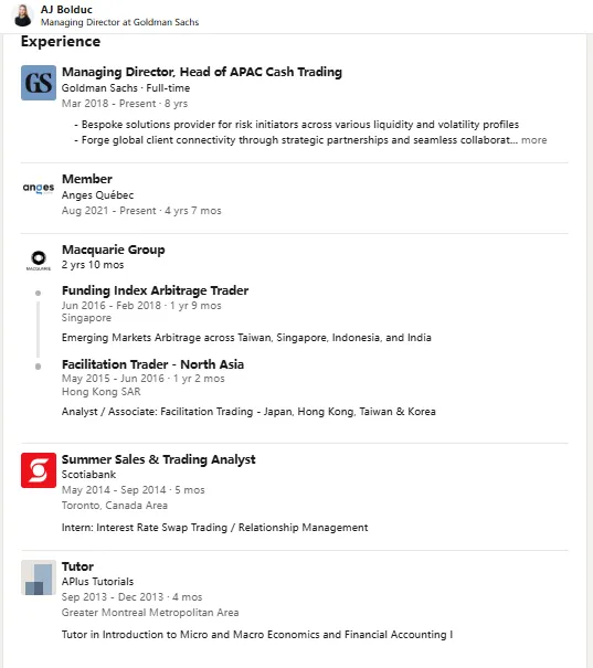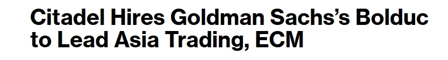 彭博消息,知情人士透露,刚刚晋升为高盛董事总经理AJ Bolduc,跳槽对冲基金城堡(Citadel)、负责其亚洲交易和股票资本市场业务(Asia trading and equity capital markets)。