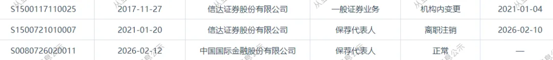 近日证券从业系统显示,林斌,2月12日加入中金。三友联众2月19日曾公告:林斌先生因内部工作调动原因,不再负责公司首次公开发行股票并在创业板上市的持续督导保荐工作。