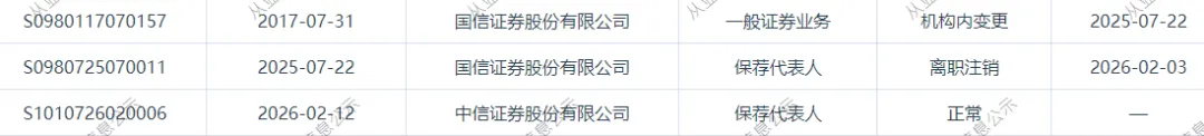 近日证券从业系统显示,顾兴光,2月12日加入中信证券。
