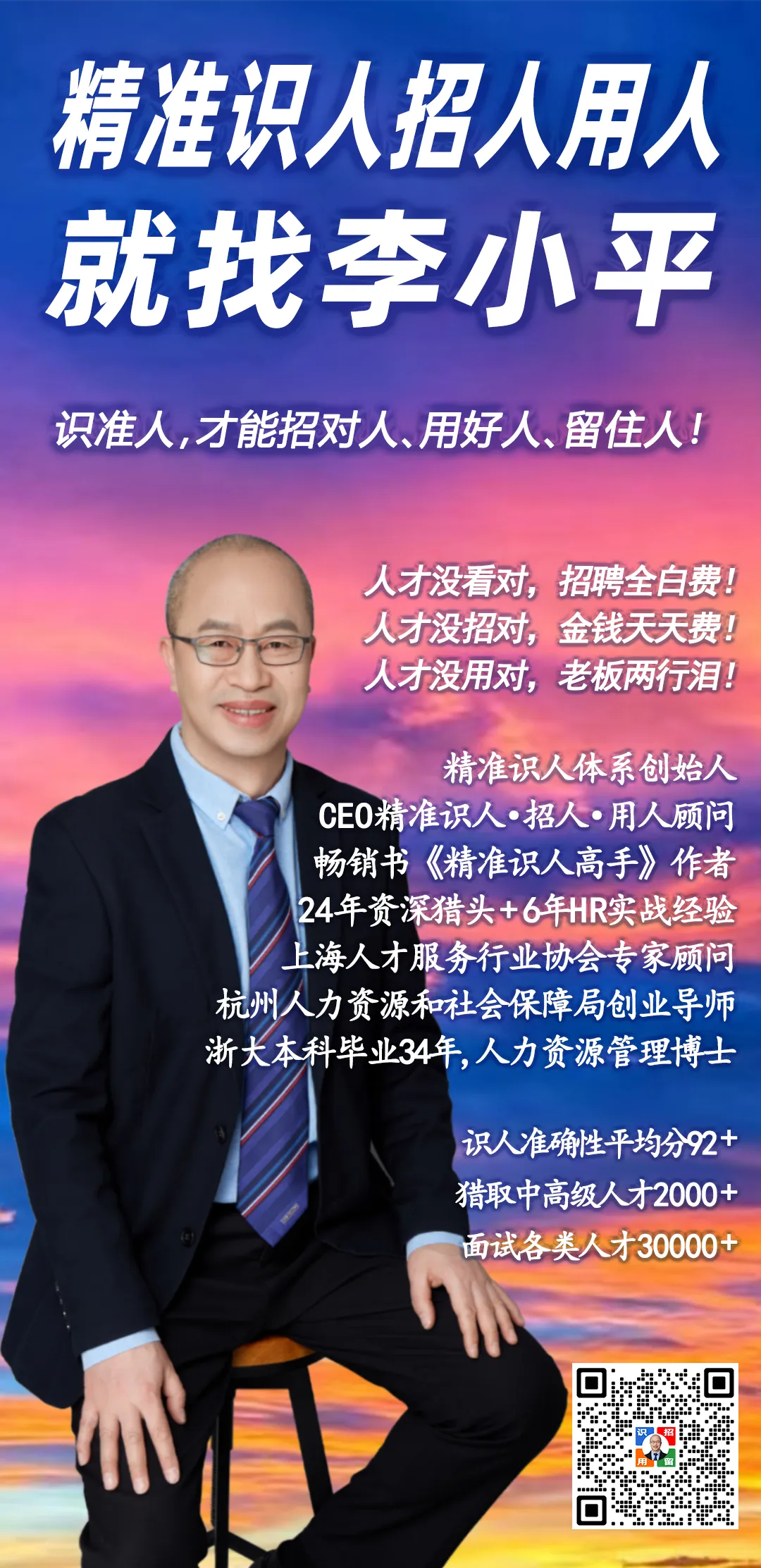 我是李小平,24年资深猎头+6年HR实战经验,《精准识人高手》作者,人力资源管理博士,专为老板、管理者、HR解决精准识人·招人·用人难题!