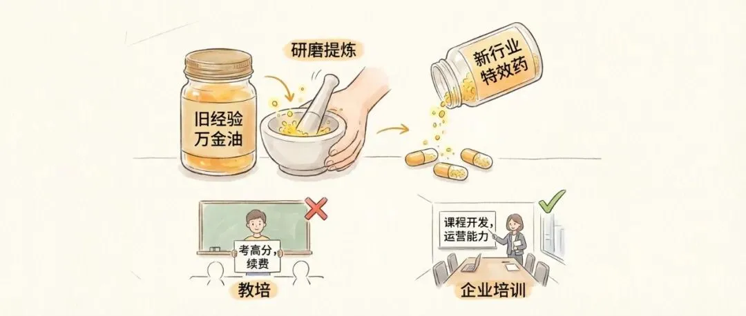 举个例子:从“教培”转行“企业培训” ❌ 错误打法:大谈怎么让孩子考高分、怎么做续费。 ✅ 适配打法:“我擅长将复杂的知识点拆解成易懂的模块(课程开发能力),并设计激励机制确保学员完课率(运营能力),这套方法论同样适用于企业员工技能培训。” |