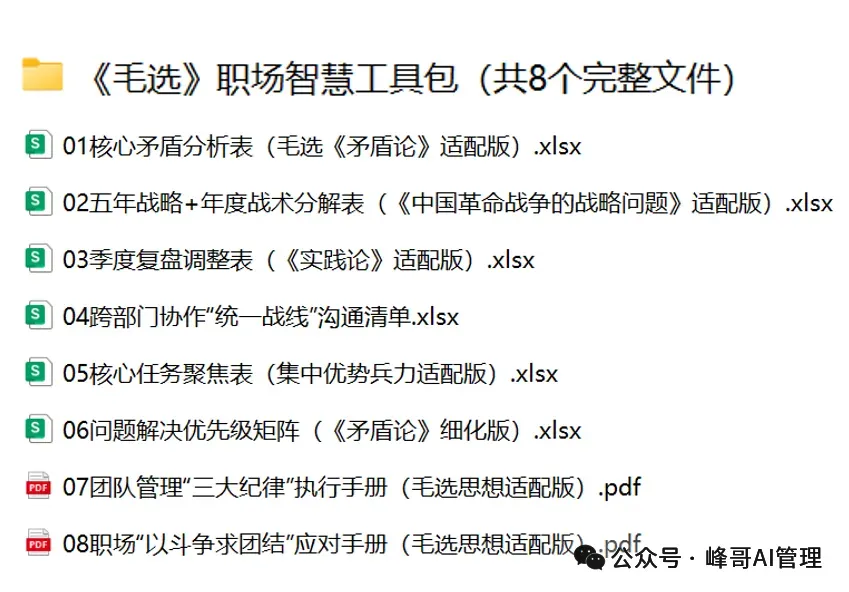 这不是理论文章,而是8个即拿即用的实战文件,将毛选的战略思想转化为你能直接使用的表格、清单和手册。