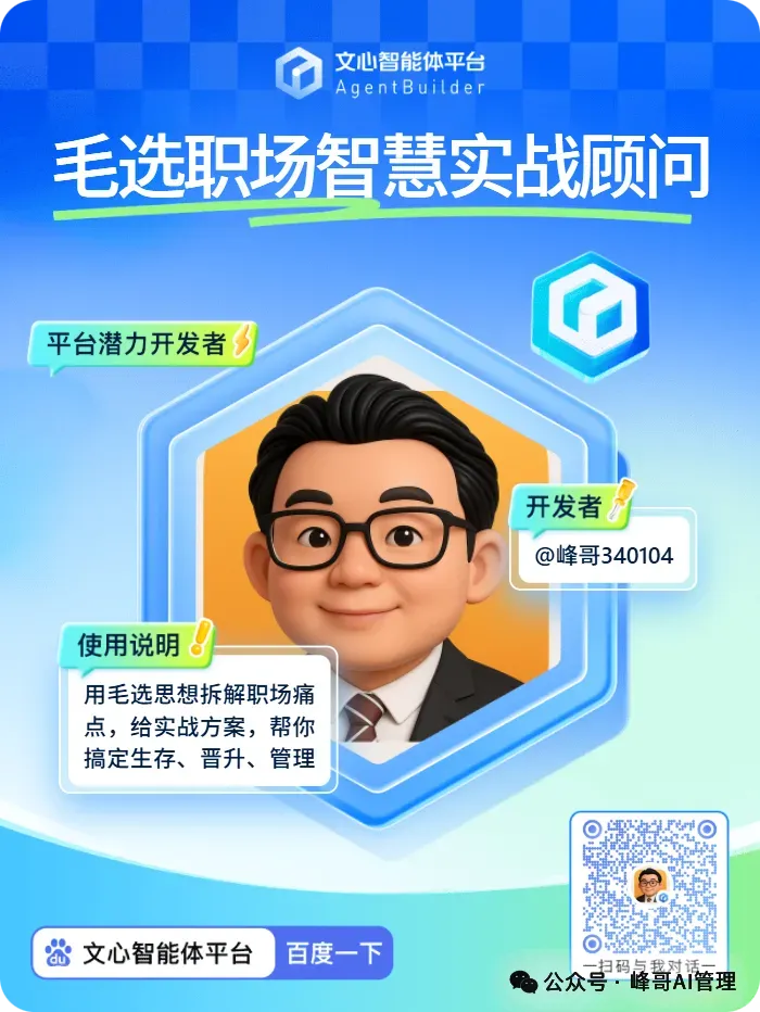 扫码下方卡片就能和我的数字分身对话 —— 不用啃厚书,不用记理论,直接用《毛选》的底层逻辑,搞定职场里的糟心事。