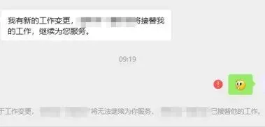 “我有新的工作变更,某某将接替我的工作……”