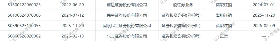 近日证券从业系统显示,张凯烽,2月13日加入东方证券。张凯烽,民生证券研究院非银金融首席分析师,武汉大学经济学学士,波士顿大学精算科学硕士,四年保险精算产品开发经验,曾任职于信达证券研发中心,从事非银金融行业研究工作。2023第十一届“Choice最佳分析师”第三名(核心成员)。研究方向覆盖保险、券商、金融科技和资产管理等。