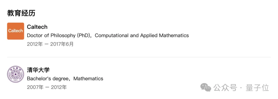 本科毕业后,他前往美国加州理工学院(Caltech)攻读博士,于2017年获得应用与计算数学博士学位。