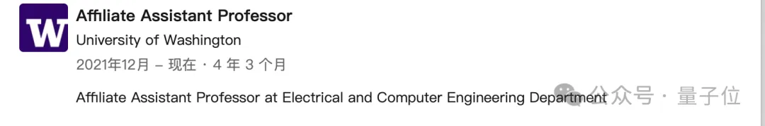 值得一提的是,他在2021年还加入了华盛顿大学,担任电气与计算机工程系的兼职助理教授至今。