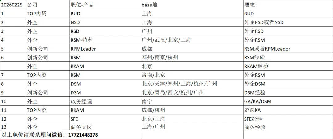 2、友情转发全国职位,医药销售/管理/市场职位;请联系微信17721448278