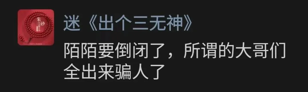 难道陌陌圈内已经骗不到主播兜里的钱了!所以很多陌圈里的"骗子",刷拉的大哥,转战到视频号,专挑眼熟的跳槽主播,乱枪打鸟似的锁定行骗?