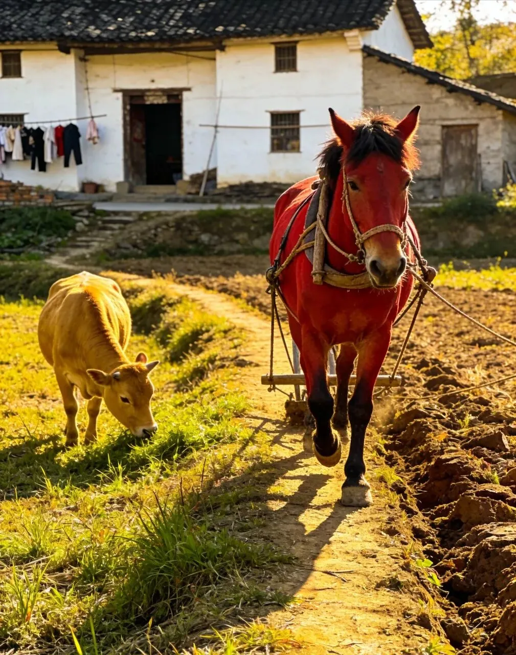后来,那匹马年迈体衰,干不动重活了,二叔无奈,只能将它拉到集市卖掉。老伙伴一走,我家这骡子,像是瞬间丢了魂。它仍与家里那头老牛作伴,可牛渐渐上了年纪,性子本就慢,越来越跟不上它的节奏。骡子跑得快,牛走得缓,一来二去,牛没少受委屈。骡子再能干,也再也寻不到一个能同快慢、合心意的伙伴。它看着,心里也急,却再无懂它快慢、知它心意的同类。
