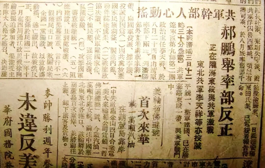 陈老总对此当然表示欢迎,他不惜亲自冒险,在1946年1月4日会见了郝鹏举,向他当面阐述了当前的形势和我军的政策,并指示长期潜伏在国民党军队中的地下党员张克侠,暗中策动其起义。