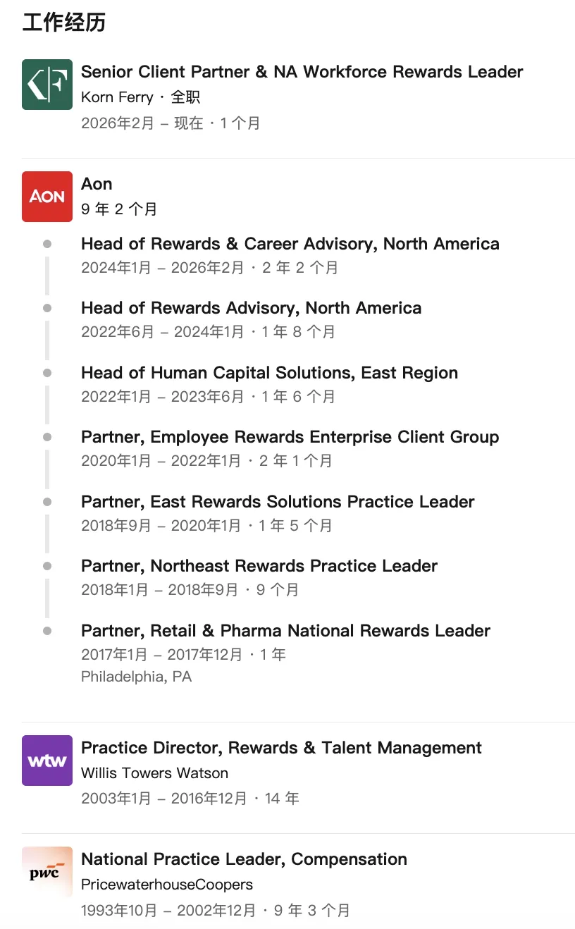 Voss此前曾任怡安(Aon)北美奖励与职业咨询负责人、Willis Towers Watson奖励与人才管理业务总监,以及普华永道美国(PwC US)薪酬业务全国负责人。