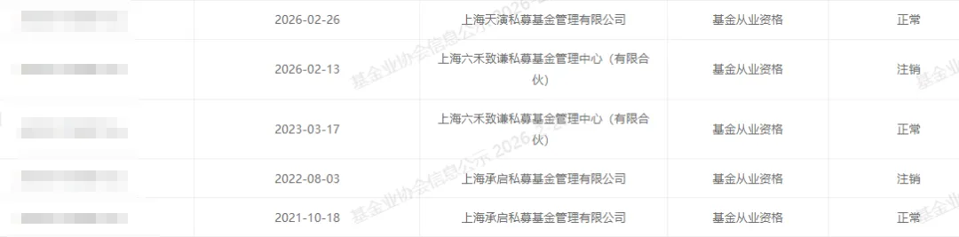 >上海六禾致谦私募一员工跳槽上海天演私募