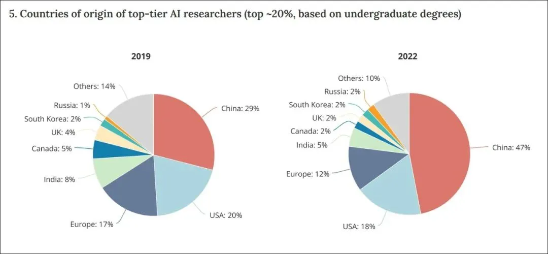 2024年,《纽约时报》一篇题为《在一项关键的人工智能指标上,中国领先美国:人才》的文章援引保尔森研究所旗下智库MacroPolo的数据:中国已经超过美国,成为全球顶尖AI工程师的头号输出国——全球近一半的顶尖AI研究者来自中国,而美国本土本科培养的,只占18%。