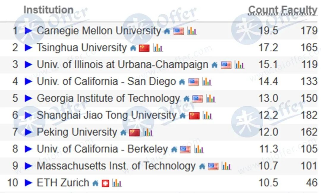 CMU在CS领域依旧稳居第一,清华大学以微小差距获得第二名,中国大学强势崛起,TOP10占据三成席位,彻底打破欧美高校的长期垄断。