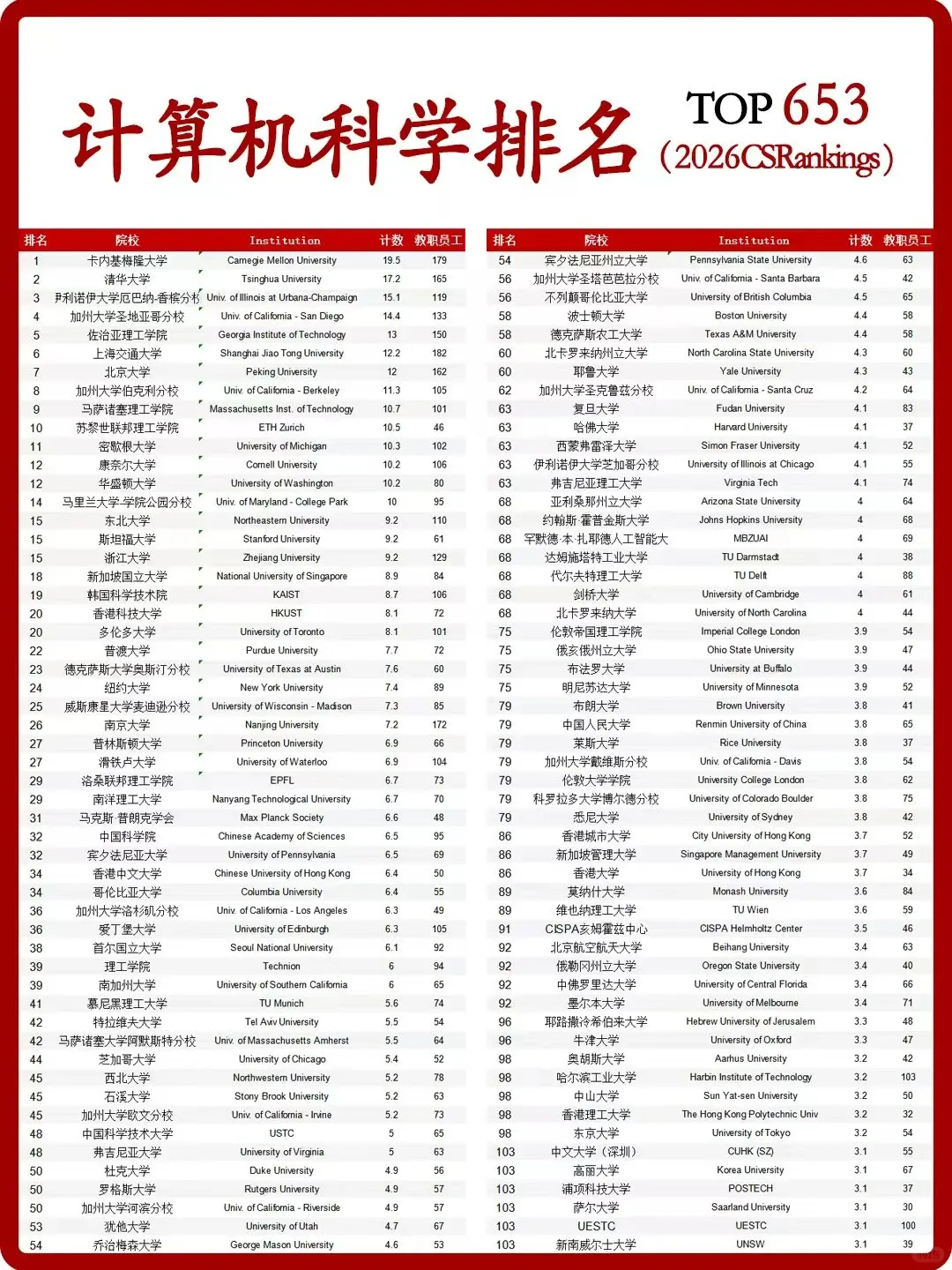 2026 CS Rankings更新,