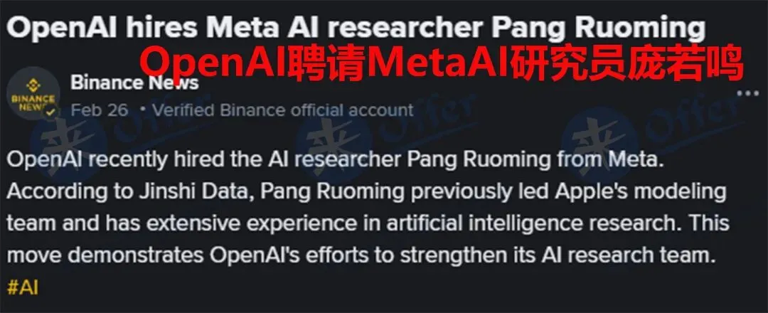 硅谷AI人才争夺战再爆关键战报:Meta豪掷约14亿人民币签下的华人AI核心人才庞若鸣,入职仅7个月便正式离职,加盟竞争对手OpenAI。