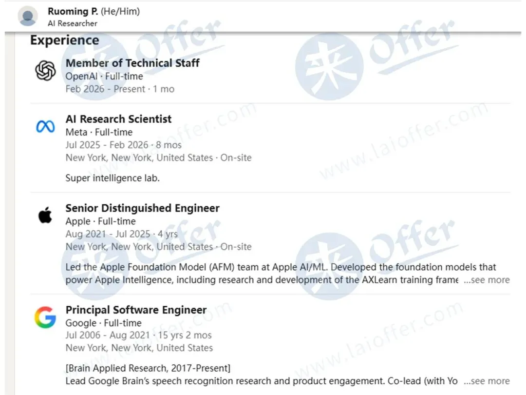其履历堪称顶配,曾在谷歌、苹果深耕AI领域,主导过基础模型团队的搭建。