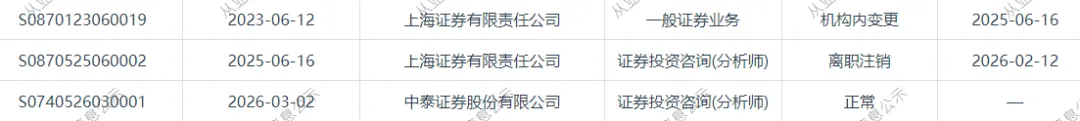 上海证券一分析师跳槽中泰证券