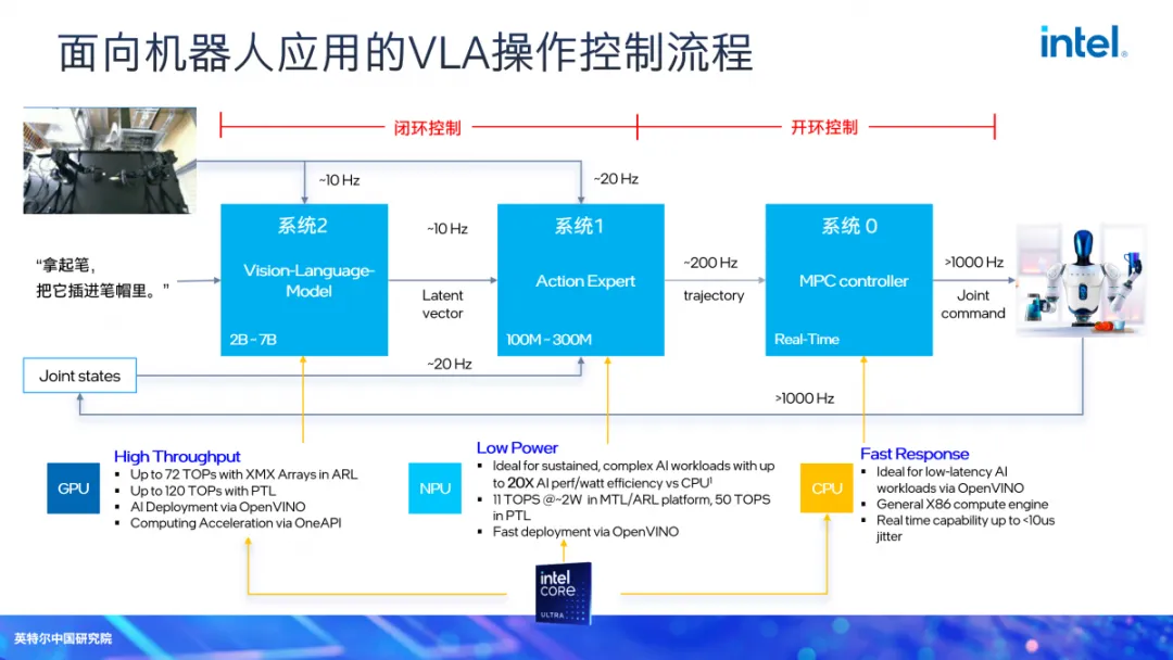 目前机器人前五强,优必选、宇树、越疆、云深处和智元的高端产品100%采用英特尔的芯片组做小脑,英特尔在传统工业机器人的运动控制、高精度浮点计算和逆运动学求解等场景中,凭借高可靠性的工业控制板和丰富的视觉库,占据了绝对霸主位置,机器人的实时性和控制精度基本上由英特尔决定。国内机器人厂家,强项在大模型、AI相关领域,底层运控并非强项。做上层任务时,如何处理、分配、调度底层CPU核、内存、I/O等资源,在虚拟化隔离、内核绑定、操作系统穿透等方面,确保达成实时性目标,都由英特尔的CPU完成。