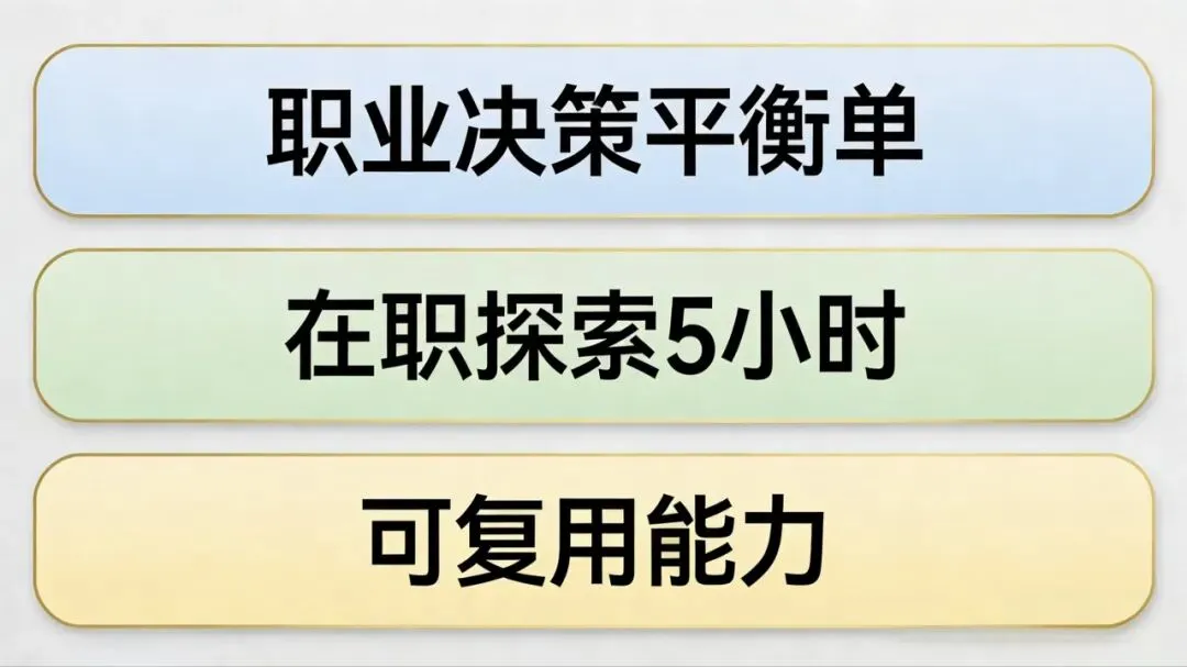 配一句话:“职业决策平衡单那个方法,你试试。”