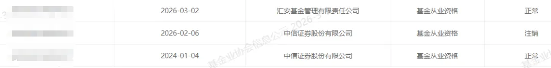 >中信证券一员工跳槽汇安基金