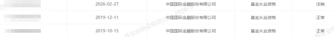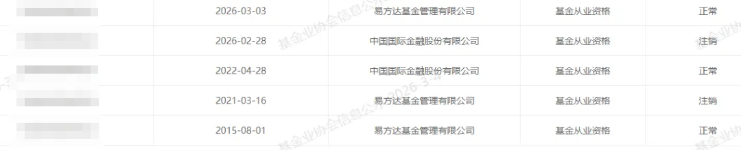 2、张某玉。3月3日,基金从业系统显示,张某玉,26年2月27日从中金离职,26年3月3日加入易方达基金。
