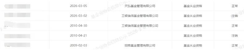 王X雅,3月2日从工银瑞信离任,3月5日加入天弘基金。