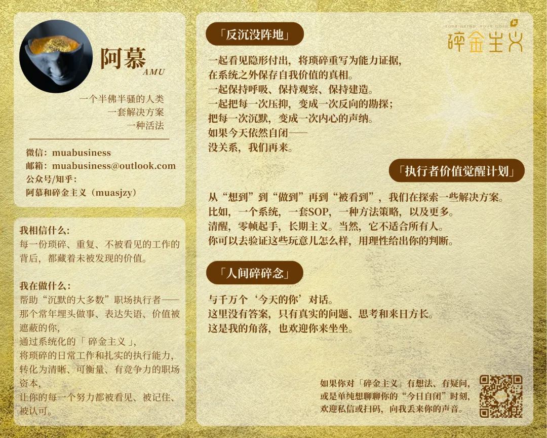 甚至如果你愿意,可以带着这三个问题,回去翻翻你过去一年填过的表、写过的报告、熬过的夜。