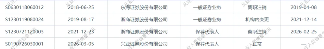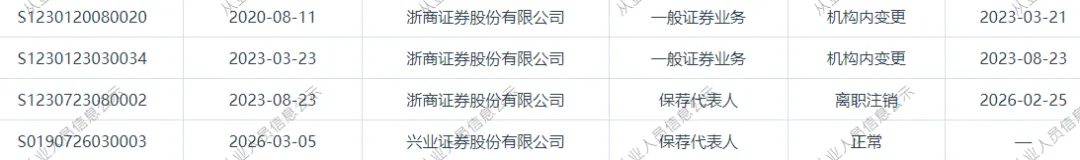 近日,证券从业系统显示,浙商证券2名保荐代表人跳槽兴业证券: