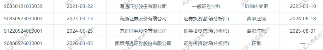 >方正证券一首席分析师跳槽国泰海通
