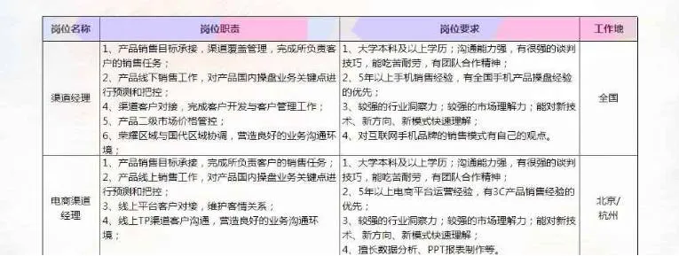 当然就互联网手机行业来说,企业更看重你是否对互联网手机品牌的销售模式有独特认知,以及对销售渠道是否有良好的开拓能力,毕竟高效完成销售任务就靠你了。