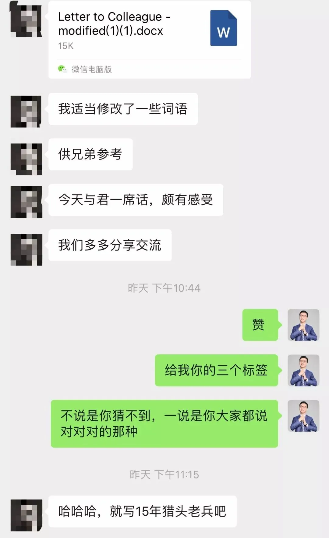 这些朋友中,有位上海的猎企创始人,也是15年猎头老兵(他非让我这么叫他)。昨天下午,不,现在已经是前天了。突然就出现了。(上一次出现还在17年,好在认识10多年,倒是没啥违和感。你看,总有一些朋友就算很多时候没联系,一聊起来就像昨天刚见过面似的)