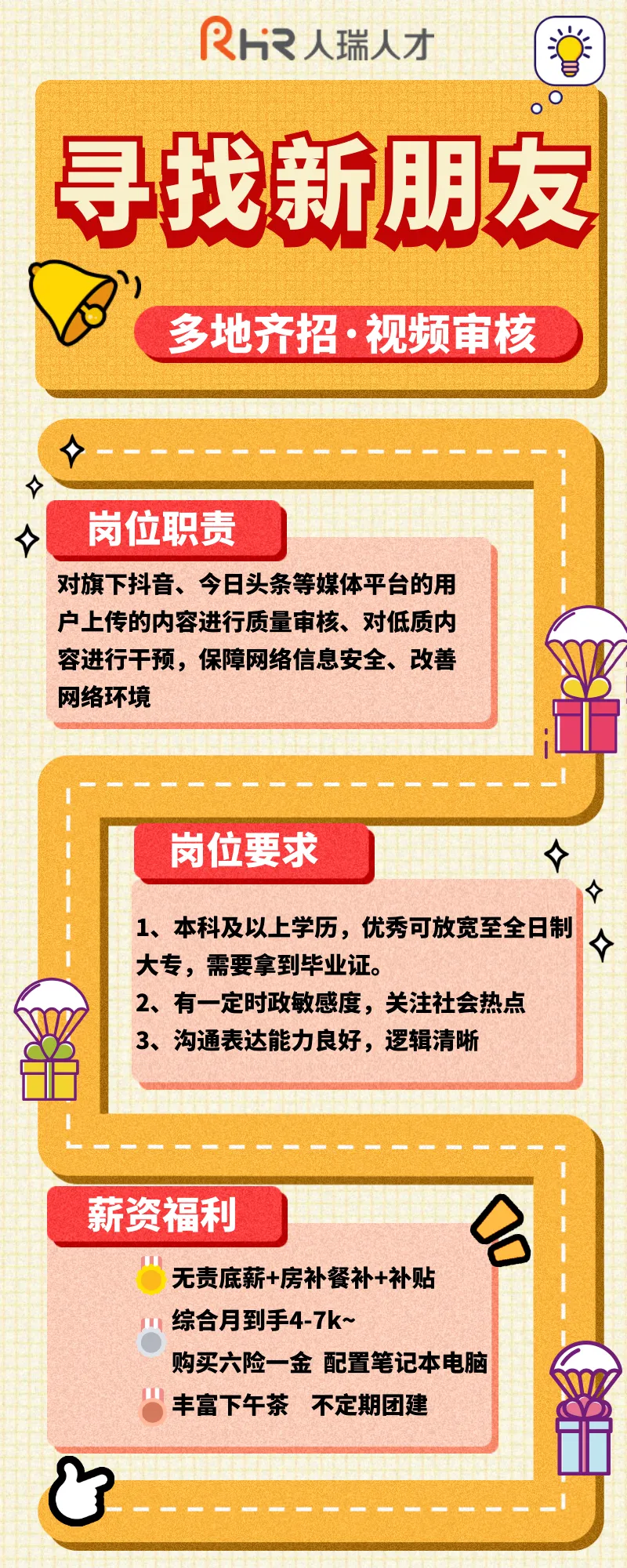 字节跳动与人瑞人才达成合作,至今已在成都、西安、济南、重庆等全国等城市设立了内容质量中心。