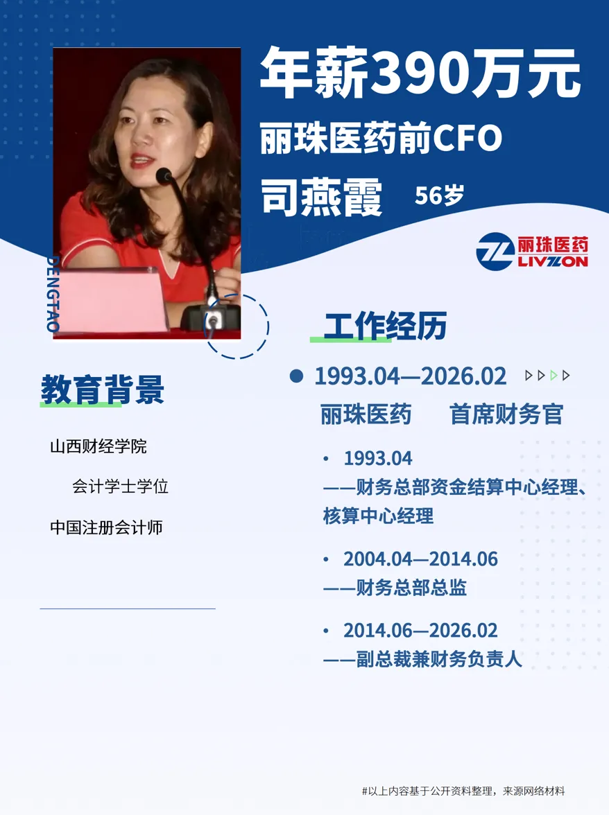 2026年2月,她以首席财务官的身份离任。此时,她已经在丽珠工作了三十三年。